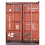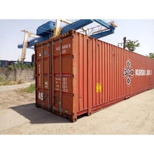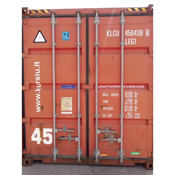 Questo container marittimo High Cube da 45 piedi usato è lungo 13 metri e ha una doppia porta su uno dei lati corti.